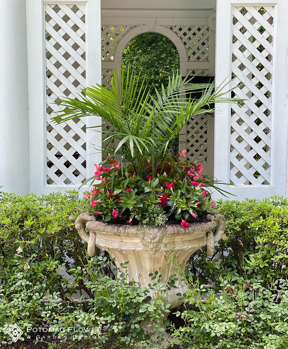 Annuals: The summer season is when you'll see Petunia and Calibrachoa filling out much of your container. Mixed in you'll find Verbena, Lantana, Ageratum, Angelonia, Scaevola, Bacopa, Torenia, and many more.